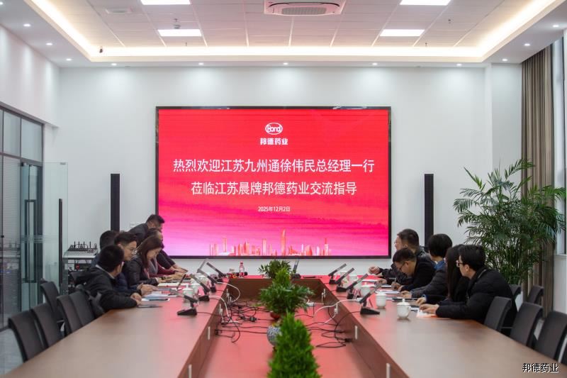 邦德药业总经理张振平携常务副总张天宇、营销总经理黄庆锋、销售总监张文杰、江苏省办业务省总顾佳及省办业务地总许能节等公司高层热情接待,双方就进一步深化战略合作、优化渠道布局及核心品种的市场承接展开了深入而富有成效的交流。