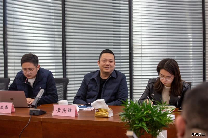 参观结束后,双方移步至二楼会议室举行交流座谈会。会议伊始,由邦德药业江苏省办业务省总顾佳率先发言。顾总结合详实的数据与案例,向江苏九州通的领导们全方位介绍了公司的产品品类矩阵、核心技术平台优势、现行的业务运营模式以及严苛的质量管理体系。